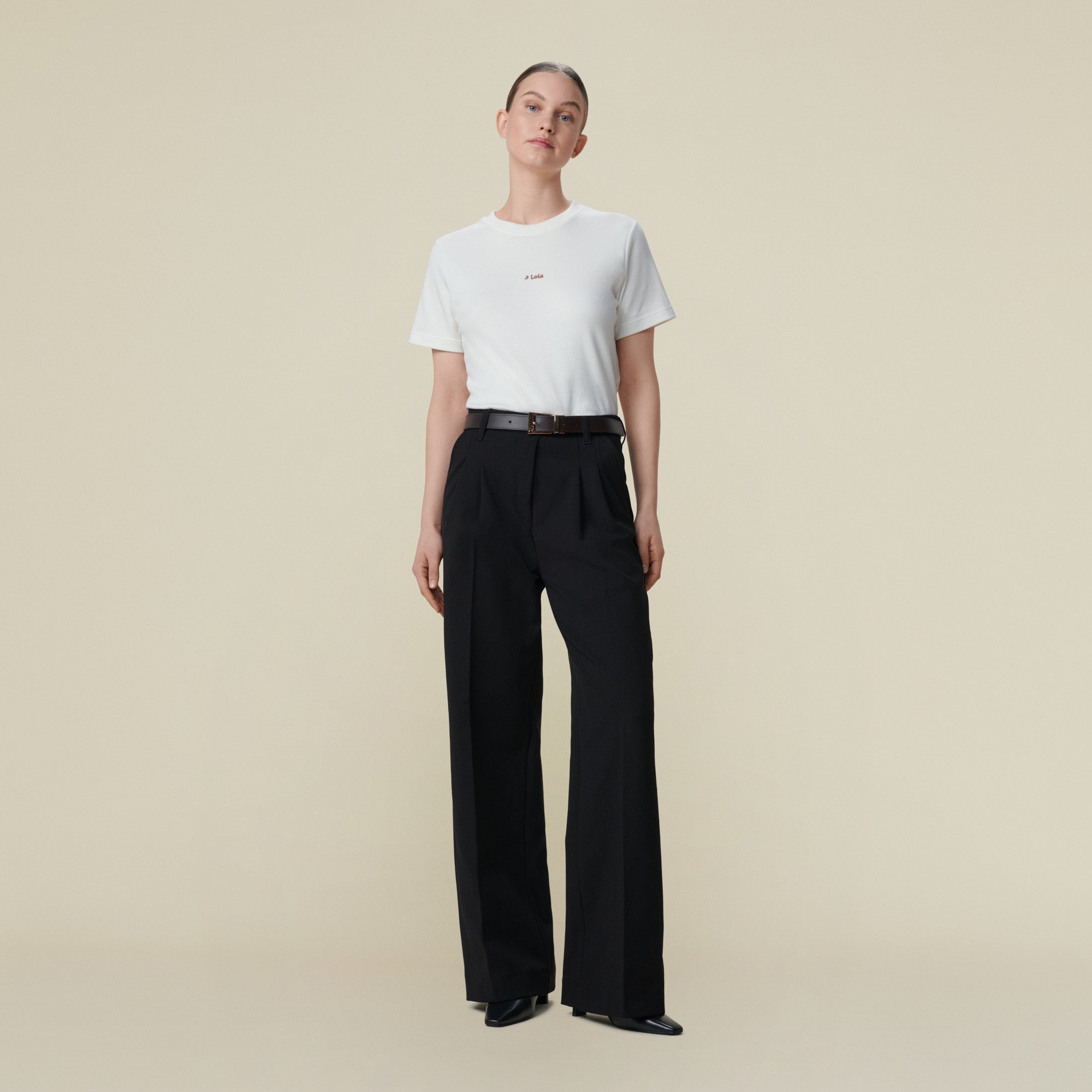 The Wanda Suit is our straight-legged trouser with tailored pleats and a fitted waist.