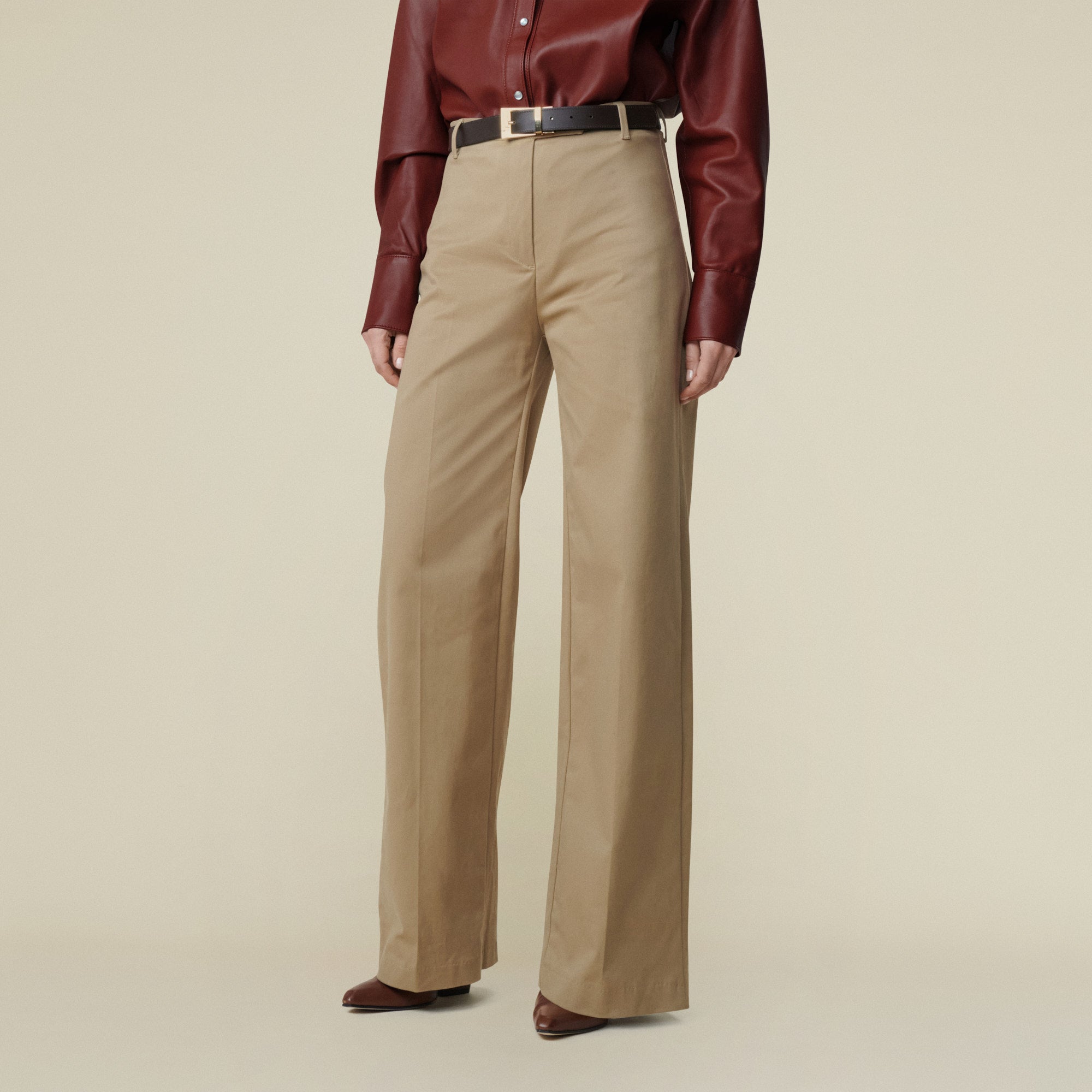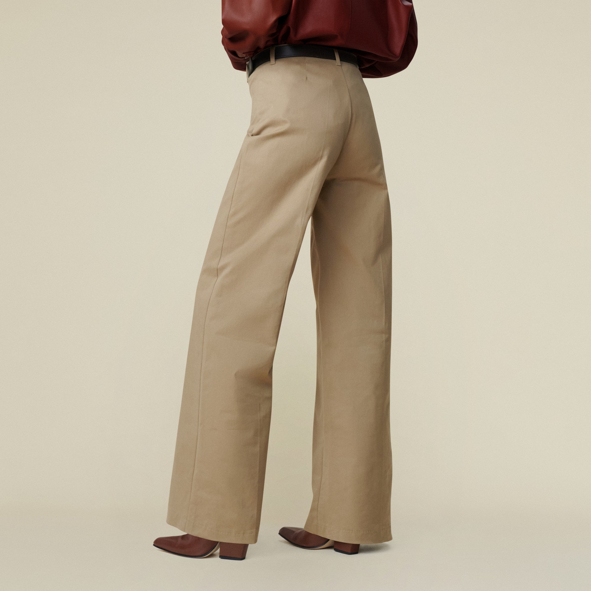 The Lucy Chino is our tailored piece with a clean front, no pockets, and a sleek waistband.