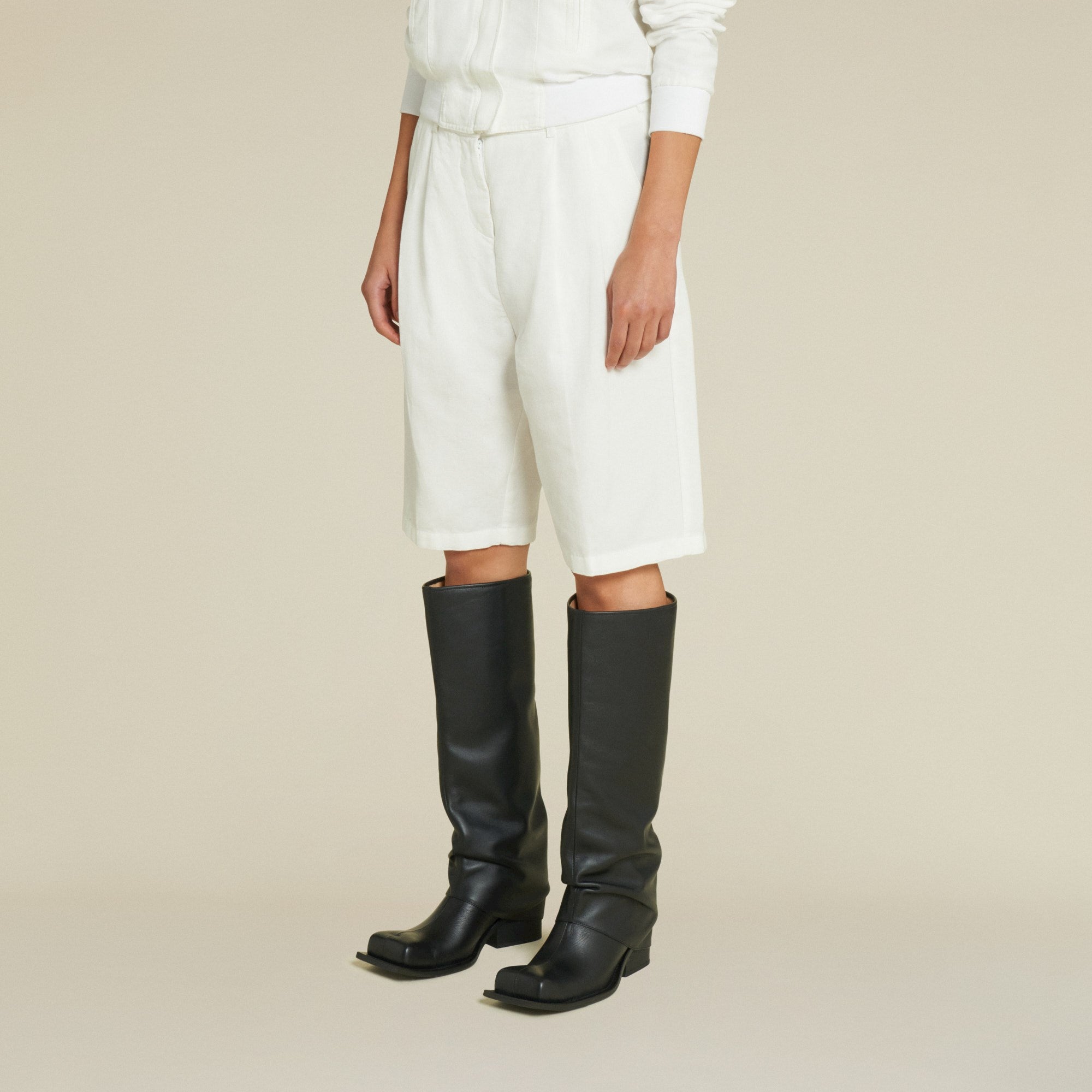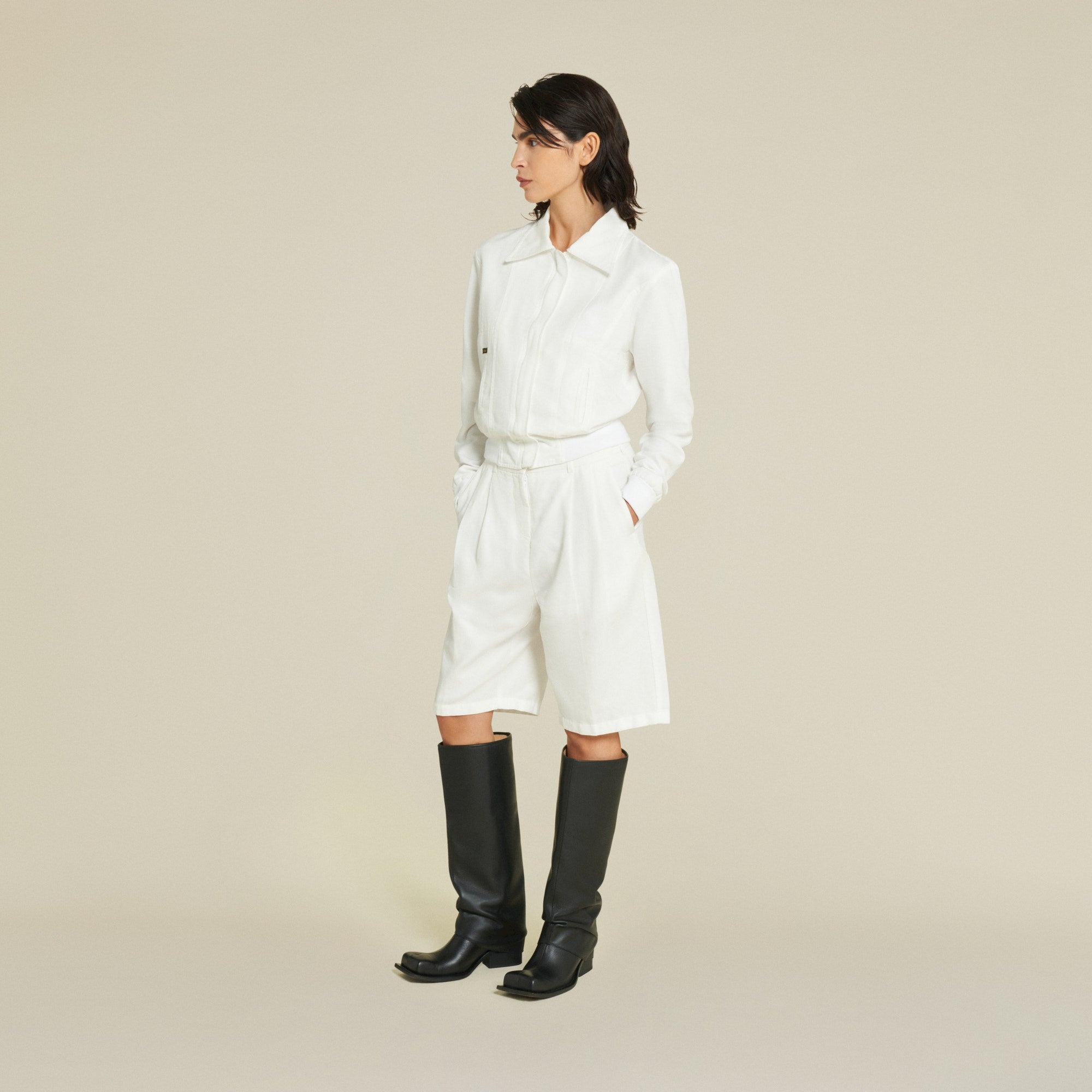The Clara is our dressed bermuda, tailored as a wide short with pleats and chino pockets. As part of our premium Club 62 Collection and cut in a crisp white Linen and Cotton blend, this piece creates a clean and modern look. Pair it with our coordinating Millie-T bomber to suit up for summer.