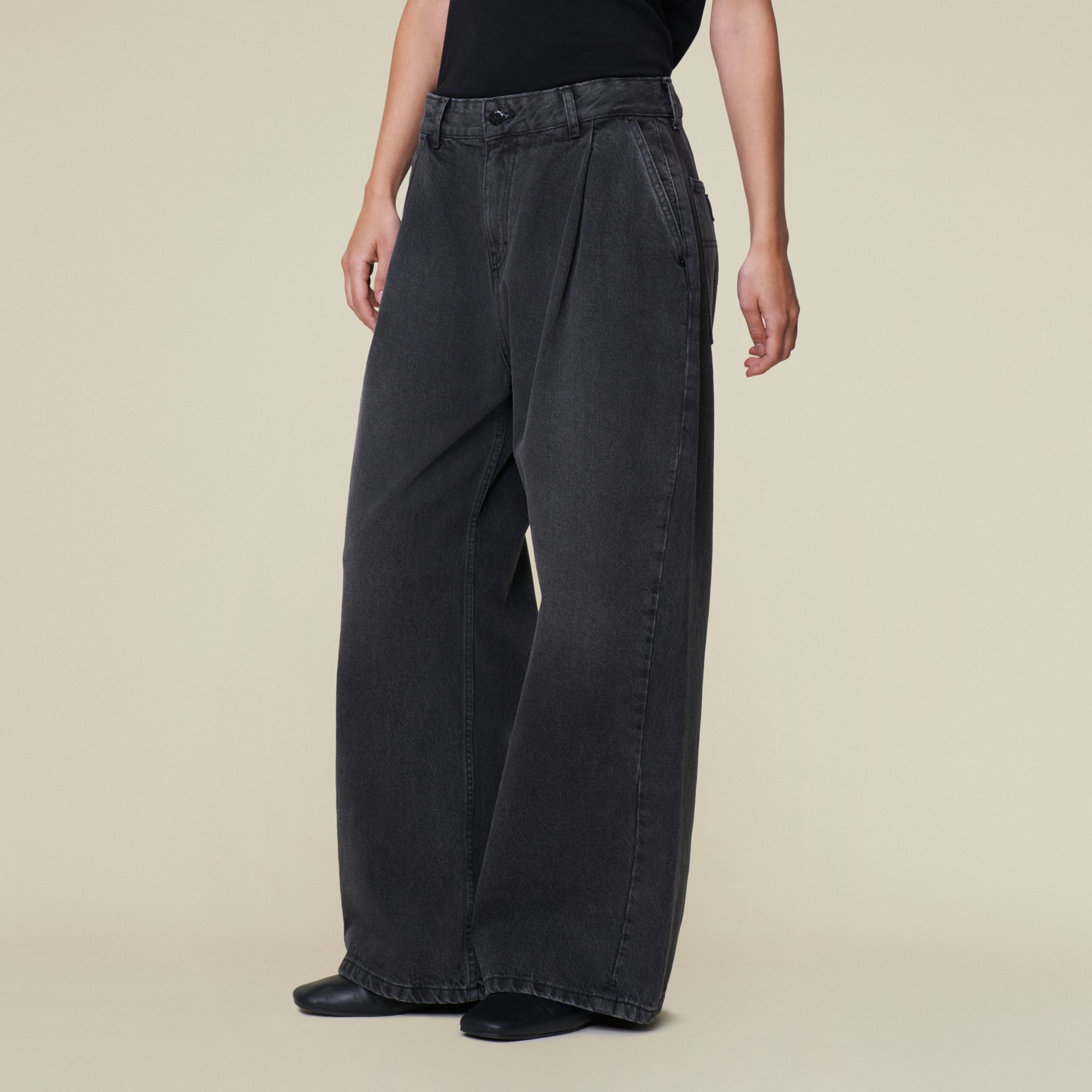 Beatrix Pleats Main Black Darkness - Low Rise Wide Fit