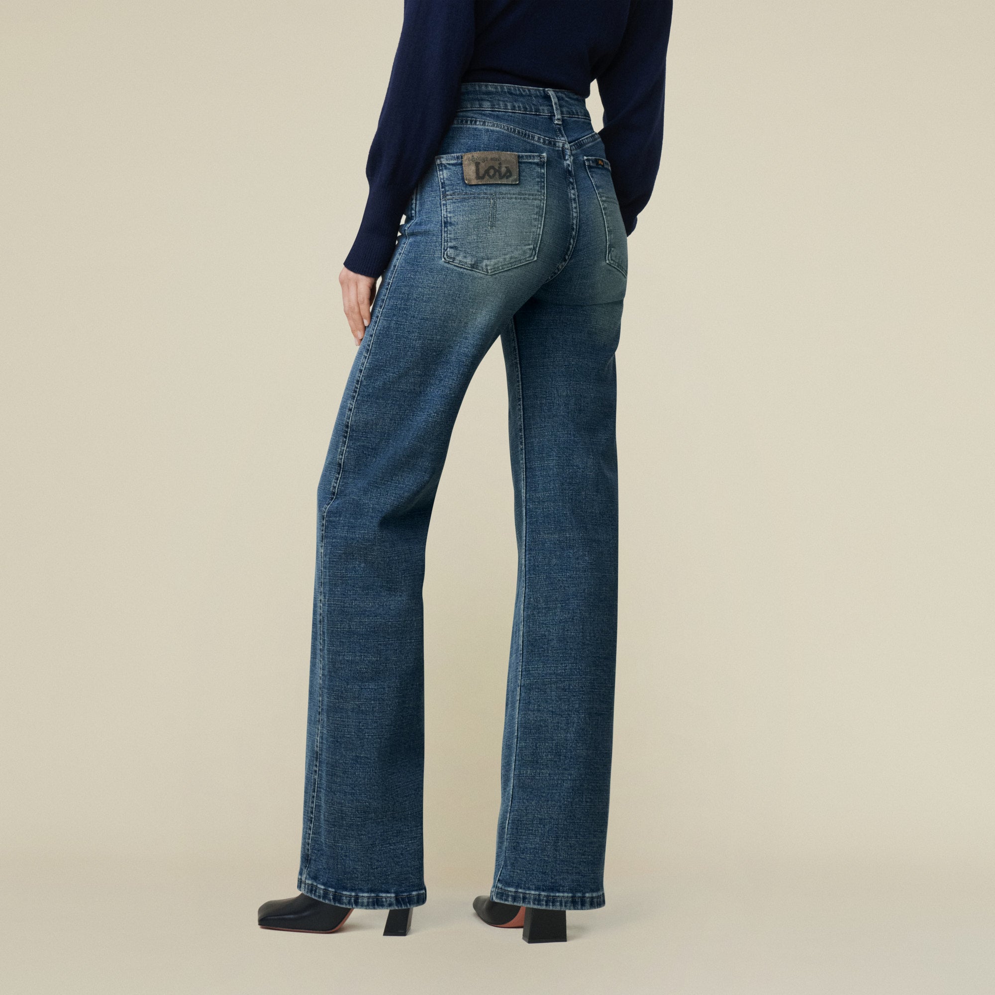 The Rosalia is our new Wide leg with a slightly lowered rise and classic double needle seems.